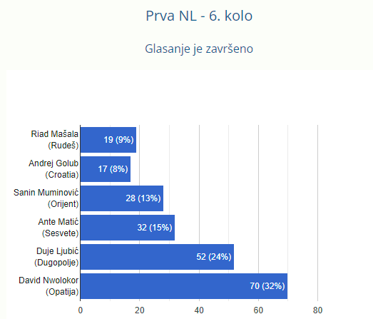 Već u 38. sekundi utakmice u Vukovaru je imao sjajnu intervenciju, zaustavio je Garića u situaciji jedan na jedan, do kraja utakmice skupio je još 4-5 jako dobrih intervencija i najzaslužniji je što je Opatija prekinula pobjedničku seriju Karačićeve momčadi. Sjajan je bio David Nwolokor, apsolutno je zaslužio titulu igrača kola!
