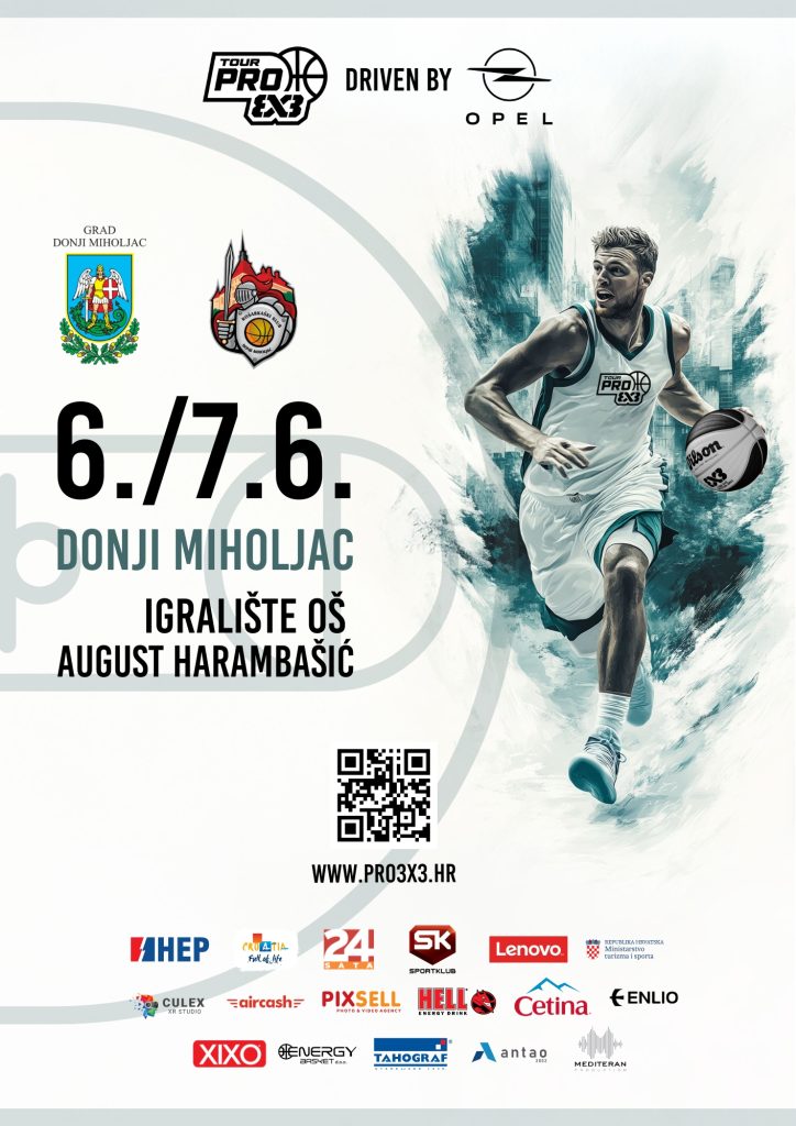 Nakon realizirane tri jadranske postaje – u Hvaru 16. i 17. svibnja, u Trogiru 23. i 24. svibnja i u Umagu 30. i 31. svibnja – karavana nazvana PRO 3×3 Tour 2025. driven by Opel seli u istočnu Hrvatsku, odnosno u Slavoniju. Četvrta postaja aktualne četvrte sezone serije spektakularnih međunarodnih turnira u 3×3 košarci bit će lijepi slavonski grad Donji Miholjac.