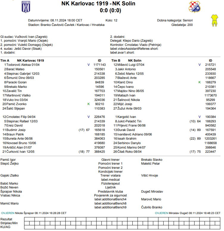 Derbi u Karlovcu bez golova i pobjednika, ali Karlovcu dovoljno za preuzimanje čelne pozicije. Barem na 24 sata, sigurno nije ono što su planirali i željeli, to je treća utakmica u nizu bez pobjede za Pamićevu momčad. S druge strane Solinu je bod na četiri rijeke dodatna potvrda odlične forme, drže odlično treće mjesto, u naletu su i vrlo su ozbiljan kandidat za jesensku titulu. Ovom ishodu sigurno su se razveselili u Pločama, i to u oba tabora, Jadranovom i Mladostaškom, u iščekivanju sutrašnjeg derbija i jedni i drugi su svjesni da pobjeda donosi čelnu poziciju, kad je Mladost u pitanju čak i s lijepom bodovnom zalihom.