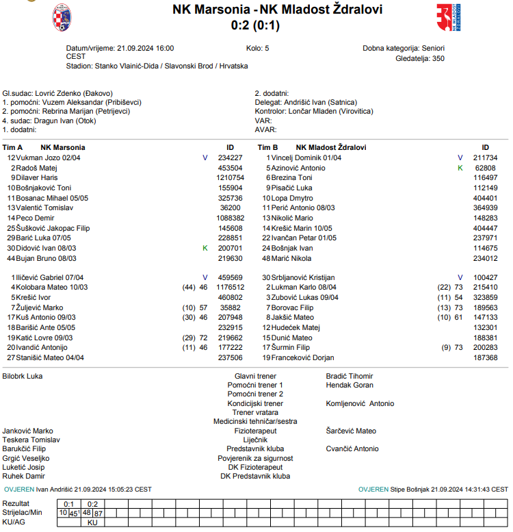 “Čestitke Mladosti na današnjoj pobjedi. Nakon utakmice sam podnio ostavku, više nisam trener, ali Marsoniji od srca želim sve najbolje u nastavku prvenstva.” – izjavio je trener Marsonije, Luka Bilobrk.