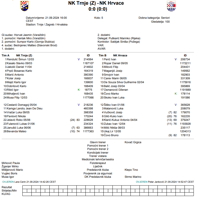 Trnje i Hrvace su odigrali bez golova, po bod svakom, nekako nitko nije oduševljen tim ulovom, ali ni pretjerano razočaran, najvažnije je ne izgubiti. Gosti su nakon utakmice prilično ljuti na sudačku četvorku iako se trener Grgica Kovač u svojoj izjavi prilično suzdržao komentiranja. Obje su ekipe sada u opasnoj zoni, iako ta zona u ovako ranoj fazi sezone i nije pretjerano opasna, bez obzira na to, i sada svi žele biti što dalje od nje.