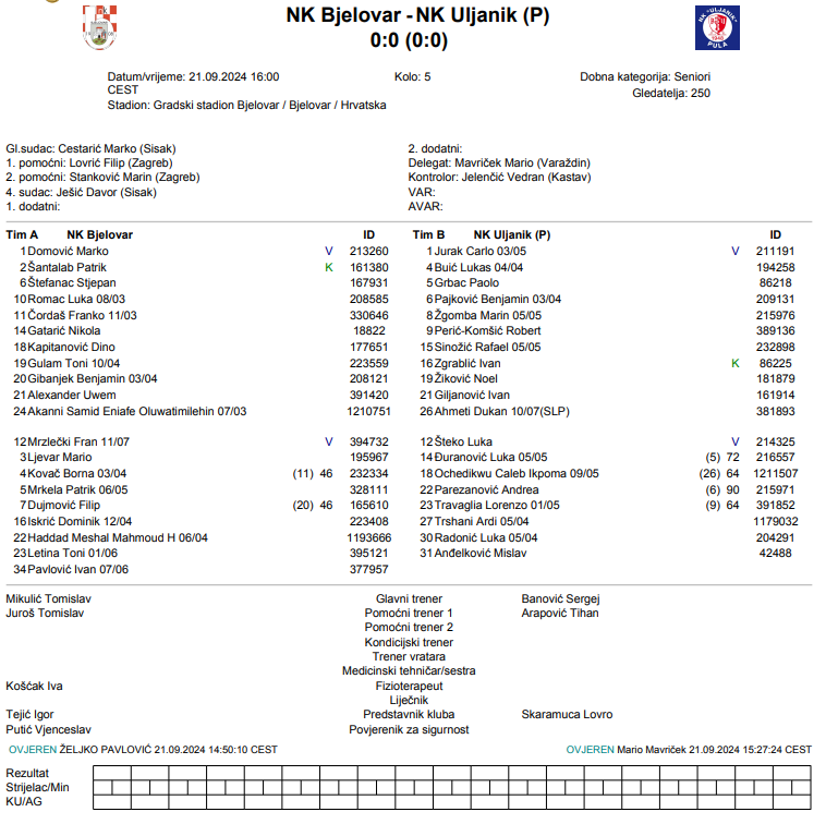 “Bod protiv Bjelovara koji je imao četiri pobjede do sada prije utakmice bi bio “puna šaka brade”, sad nakon utakmice i nisam baš oduševljen, iako nezadovoljan ne mogu biti. Da smo bili malo hrabriji mogli smo uzeti i sva tri iako je Bjelovar stvarno izvrsna ekipa, odlično posložena s iskusnim pojedincima. Mi smo bili izvrsni u prvom poluvremenu, u drugom su oni malo dali gas, mi smo se ispuhali, pa na kraju taj je bod svakom i realna slika utakmice.” – poručio je trener Uljanika, Sergej Banović.