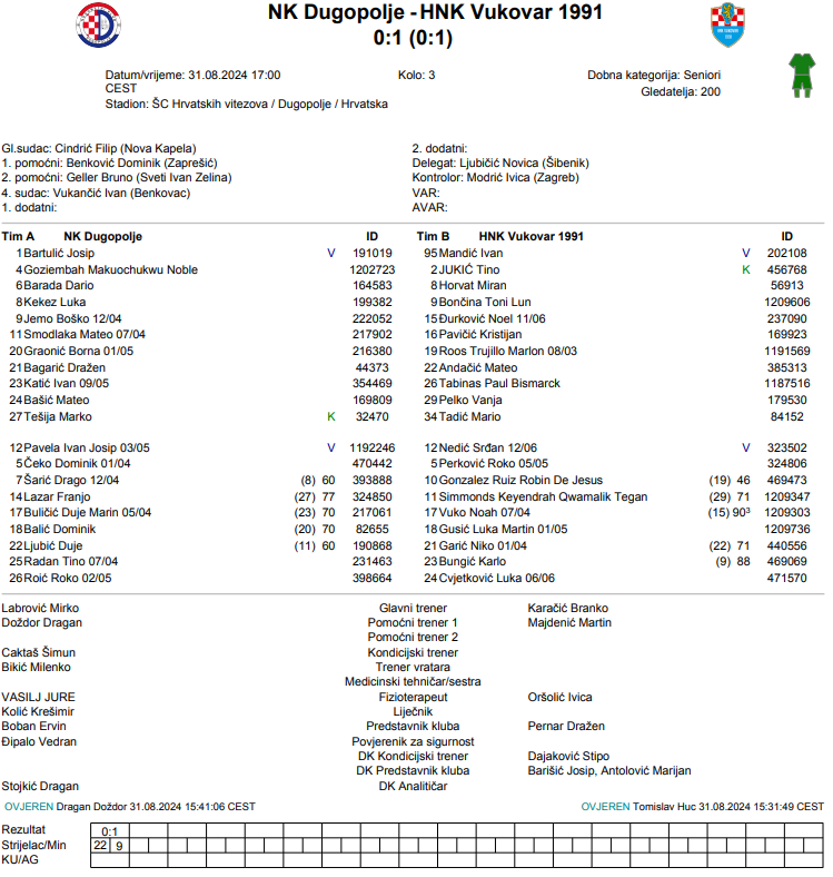 “Nažalost nogomet često zna biti nepravedan, danas se to baš oslikalo. Bio je Vukovar bolji u prvom dijelu prvog poluvremena, osim tog eurogola Andačića imali su još jednu gredu, a sve ostalo otišlo je na našu stranu. Nakon 120 minuta protiv Jaruna danas smo u drugom poluvremenu praktično igrali na jedan gol, stvorili smo dovoljno šansi, pogodili i gredu, ali jednostavno nismo uspjeli zabiti. A ja bih rekao da je to i kvaliteta Vukovara, oni se znaju obraniti, na kraju iako nisu bili bolji, zabili su i kad je tako moramo reći da je pobjeda zaslužena. Iskreno sam frustriran, sad kad pogledam iza sebe umjesto sedam ili čak i svih devet, mi imamo samo dva boda. A igrom smo zaslužili puno više od toga. Nema druge nego skupit glave i nastaviti s radom, negdje nam se mora vratiti i rezultatski nas nagraditi” – rekao je trener Dugopolja, Mirko Labrović.