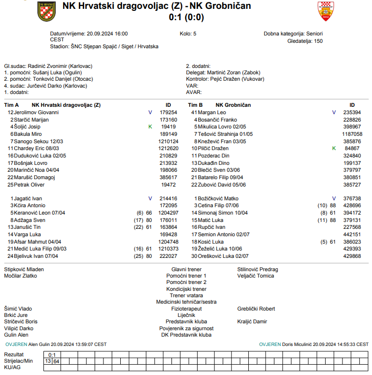 HRVATSKI DRAGOVOLJAC – GROBNIČAN 0:1