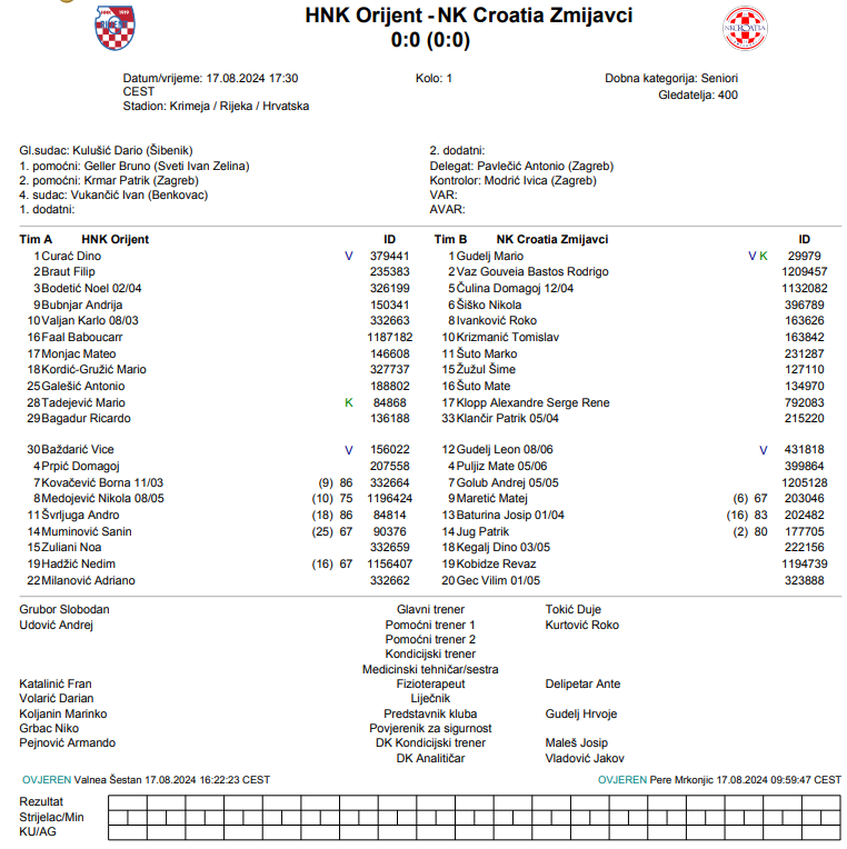Užasna vrućina apsolutno ne pogoduje igranju nogometa, no raspored je tu i mora se ispoštovati, pa su i Orijent i Croatia odradili svoju obvezu. Nije bilo puno uzbuđenja na Krimeji, no nije da ih nije bilo. U 27. minuti Kordić-Gružić je solidno tukao, ali nedovoljno dobro za sjajnog vratara Croatije Marija Gudelja koji skreće loptu u vratnicu. Zmijavčani su često kreirali situacije koje su mirisale na opasnost, no nisu uspjeli to pretvoriti u konkretne prigode. U drugom poluvremenu se Tokićeva momčad dodatno ohrabrila, izgledala je nešto bolje od Orijenta, a u 60. minuti imali su svoju najbolju šansu, Krizmanić je ostao sam na desetak metara od Curaća, ali udarac mu je bio loš pa je domaći vratar to lakoćom zaustavio. I u završnim minutama Zmijavčani su djelovali nešto aktivnije, kao da su oni nešto više željeli taj gol i pobjedu, no na kraju nisu uspjeli učiniti ništa konkretno pa se moraju kao i domaćin zadovoljiti bodom za početak novog prvenstva.
