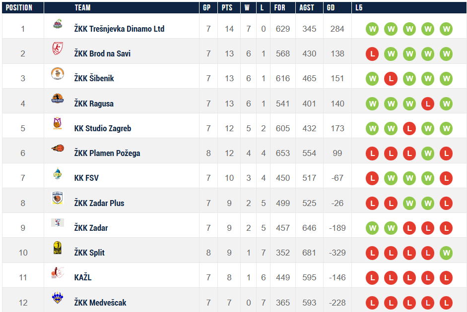 Ragusa je nastavila svoj pobjednički niz i uzela šestu pobjedu sezone, svladavši Plamen Požegu 82:72 u dvoboju koji je bio praktički riješen već do poluvremena. Domaće su rano uspostavile dominaciju, agresivnom obranom i kontroliranim napadom, pa su na odmoru imale sigurnih +14. U trećoj dionici Ragusa odlazi i na ogromnih +34, što je bio trenutak kada je Požega počela pronalaziti ritam, ali prekasno da se rasplete otvori. Zadnja četvrtina pripala je gošćama, no prednost Raguse ostala je dvostruko dvoznamenkasta. Dubrovkinje sada stoje na 6–1, dok je Plamen na 4–4 uz utakmicu više. Sljedeće kolo Ragusa čeka Zadar, dok Požega dočekuje FSV.