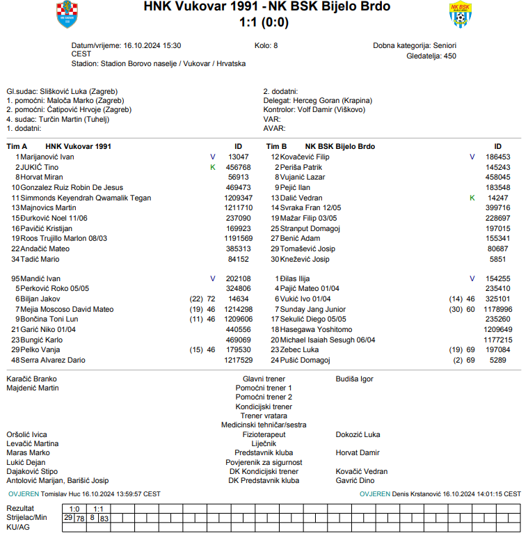 – Teška utakmica, prije dva dana smo odigrali protiv Vukovara, ono čime sam jako zadovoljan je da se niti u jednom trenutku nije osjetilo na našoj igri to da smo umorni. Ostavili smo Dugopolje bez ijedne šanse, defanzivno smo bili jako odgovorni i stabilni, dok smo prema naprijed imali nekoliko situacija. Zaslužen bod, idemo dalje – rekao nam je Ivan Radeljić, trener Croatije.