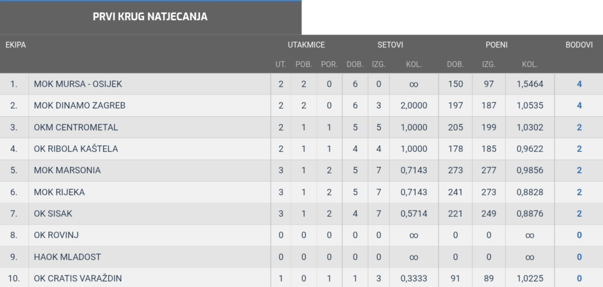 U trećem kolu SuperSport Superlige odbojkaša odigrana su dva susreta, oba s istim ishodom, domaćim slavljem. Aktualni prvak Mursa Osijek rutinski je odradio posao protiv Rijeke. Pobijedivši 3:0 (25:20, 25:19, 25:15) u meču koji je trajao 82 minute. Osječani su potvrdili zašto su i dalje glavni favorit prvenstva. Čvrsti na prijemu, precizni u napadu, s ritmom koji Rijeka jednostavno nije mogla pratiti. Prvi i treći set bili su jednosmjerni, dok je tek u drugom bilo malo uzbuđenja. Riječani su poveli 10:7, no domaćin je brzo odgovorio serijom 4:0 i preuzeo kontrolu do kraja, zaključivši posao bez prevelikih drami.