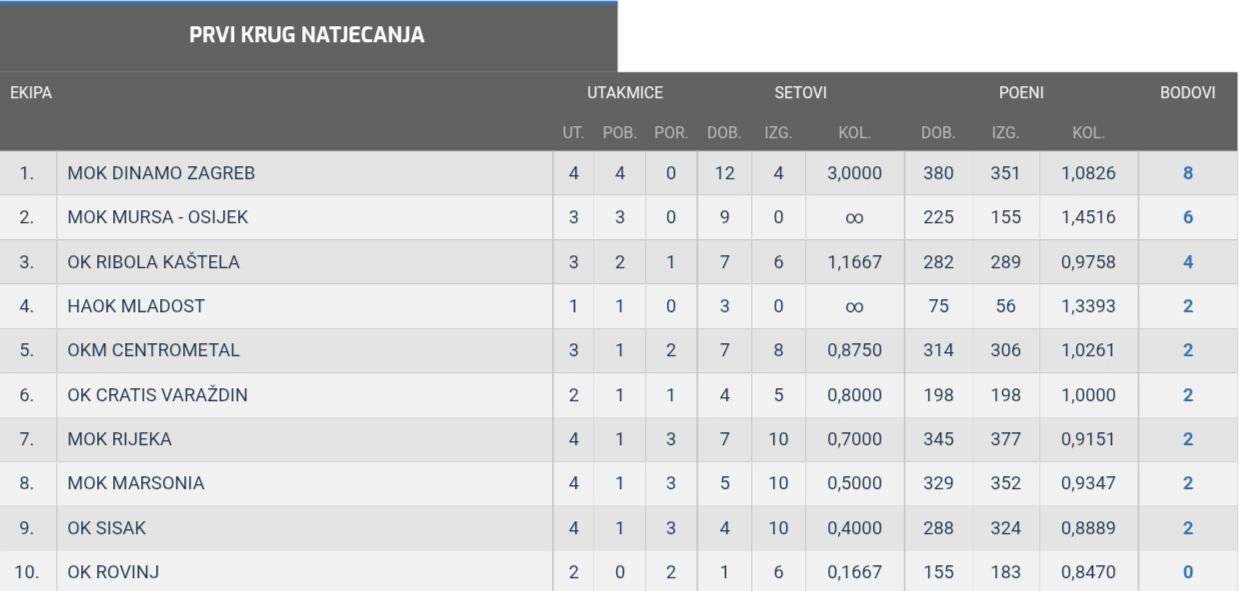 Četvrto kolo SuperSport Superlige odbojkaša donijelo je potvrdu očekivanog poretka. Favoriti su odradili posao, a iza njih se vodi borba za svaki bod. Mursa Osijek nastavlja u šampionskom ritmu, Dinamo je sve sigurniji.
