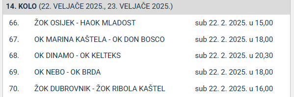 14. kolo donosi nekoliko zanimljivih utakmica: Mladost gostuje kod Osijeka, Dinamo igra protiv Kelteksa, dok Ribola ide u Dubrovnik. Dinamo